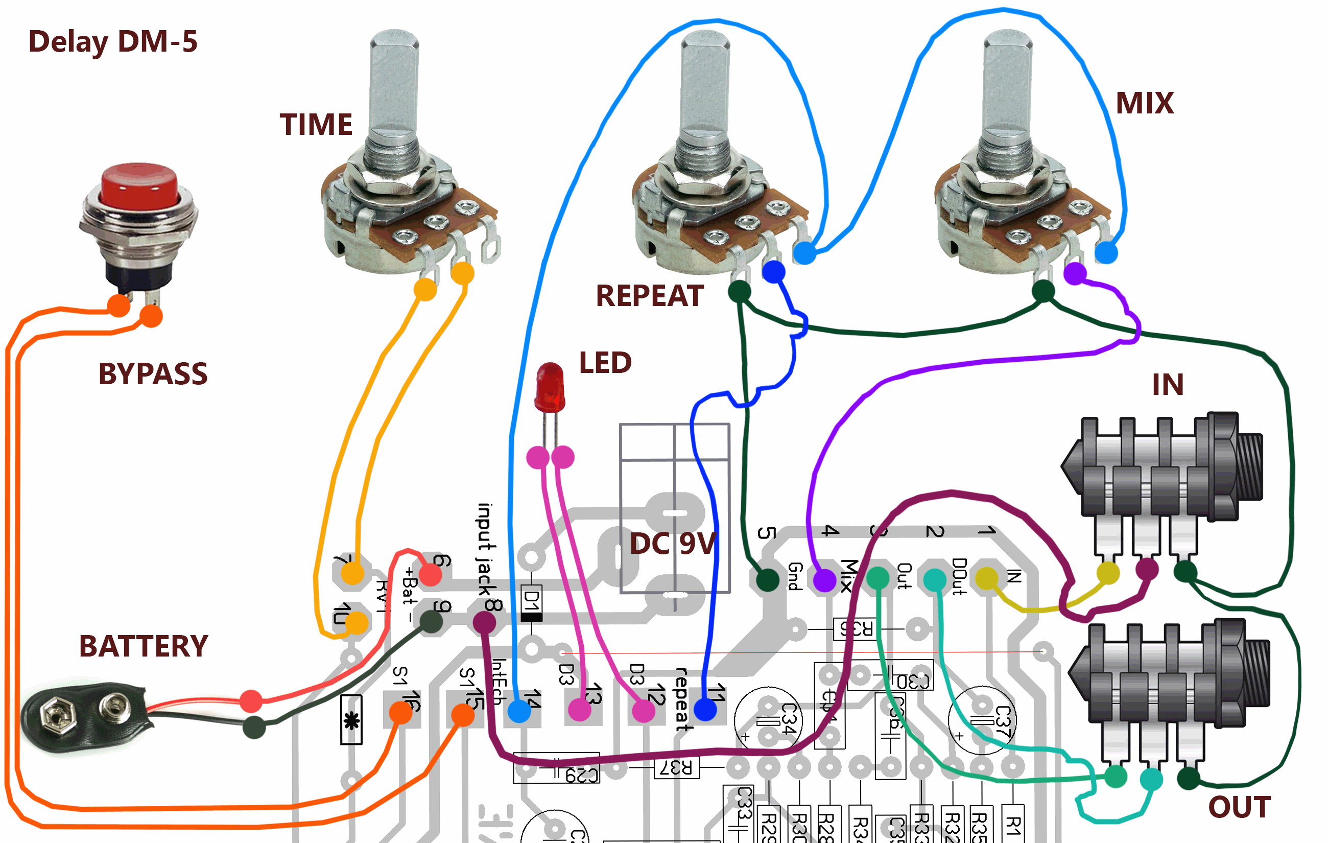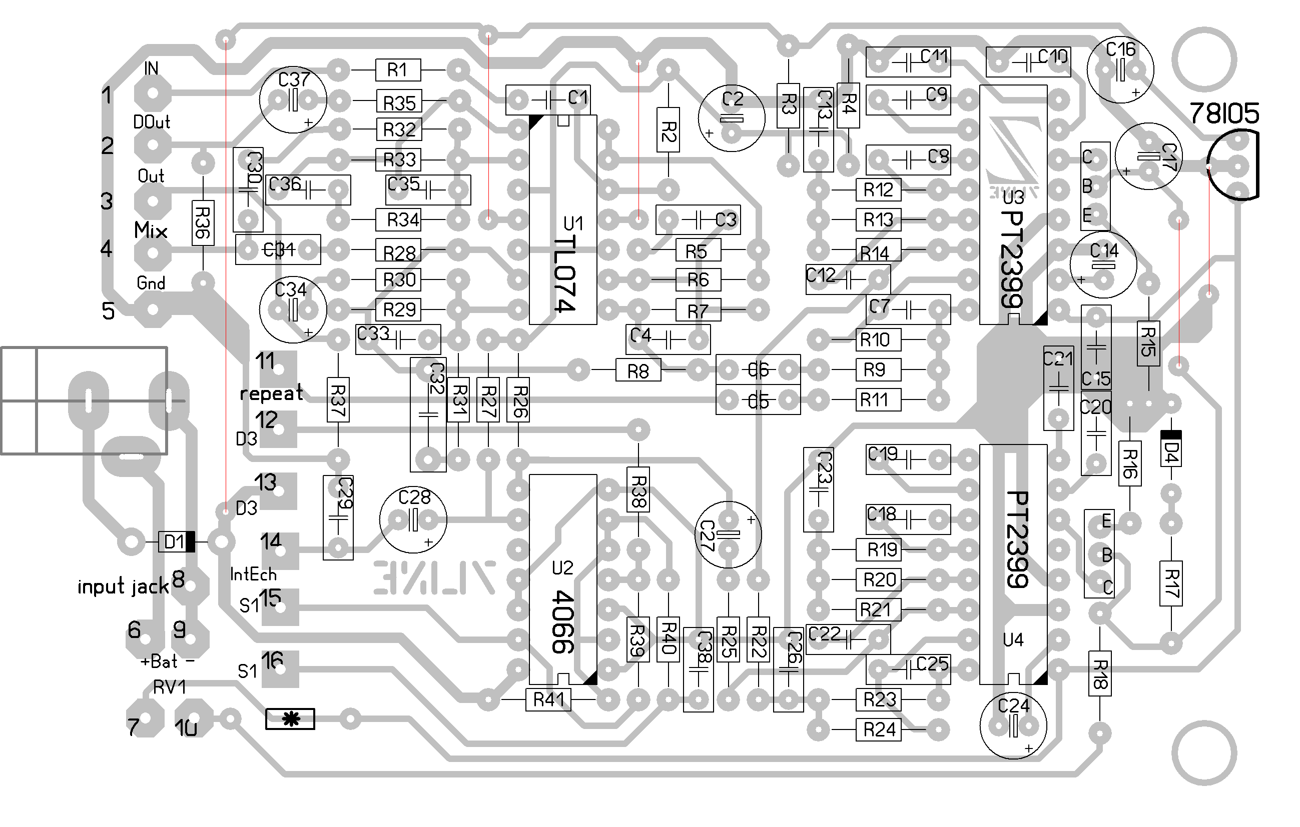Собираем Delay DM-5 на двух микросхемах PT2399. Одна из самых лучших педалей задержки на этой микросхеме. Печатную плату качаем по ссылке.